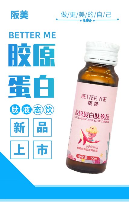 γ-氨基丁酸(GABA)是一种天然活性成分,广泛分布于动植物体内。阪美胶原蛋白肽饮品优化配方,改良口感,基于各项食品元素配方之间同时作用人体的共生反应,新增添的壳寡糖和γ-氨基丁酸成分能起到很好的良好的抗氧化、抗衰老的作用,更能防止因压力造成的皮肤功能失调,为疲劳的肌肤减压。
