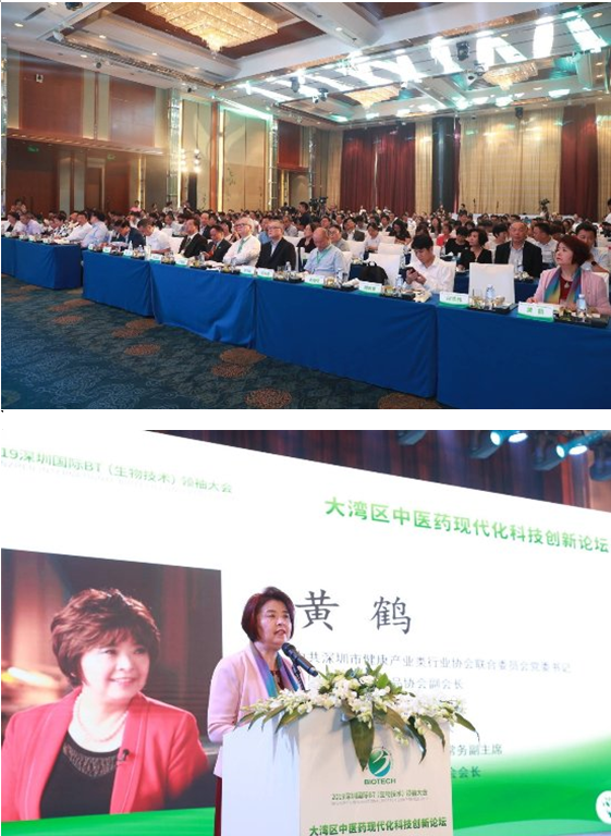 2019年9月11日,由深圳市人民政府、科技部中国生物技术发展中心指导,深圳国家高技术产业创新中心主办,深圳市健康产业发展促进会、深圳市保健协会承办的2019深圳国际BT(生物技术)大会专业论坛之“大湾区中医药现代化科技创新论坛”,在福田区星河丽思卡尔顿酒店三楼宴会厅举办隆重召开,来自深圳、香港、澳门、台湾以及内地400余位中医药领域专家、学者、企业家以及各界名流聚集一堂,就大湾区中医药现代化科技创新与合作发展展开了精彩的演讲与讨论。