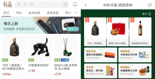 中秋节是商家不会错过的一个重要节日,各大平台卯足劲儿给消费者呈现最大的优惠和惊喜。成立于2017年的小米有品,起步虽晚,但过去一年业绩表现不俗,2018年第四季度,有品电商平台收入占到互联网服务总收入的4.1%,同比增长427.6%。此次中秋大促,有品平台精心准备的活动优惠空前,回馈米粉的同时也赋能第三方产品,如“中秋月盈,团圆赏味”活动,前三名推荐产品分别是子约原浆酒、洋河蓝色经典梦之蓝M3(礼盒装)、阳澄江南大闸蟹礼卡。