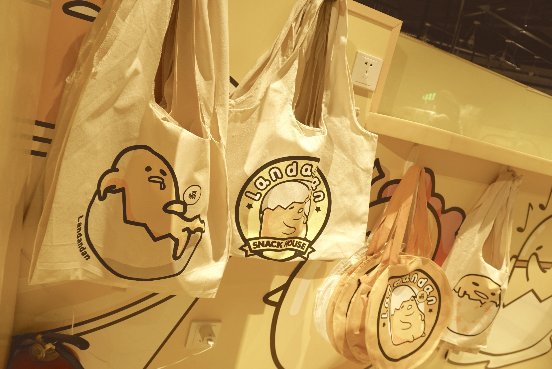 当然,作为主题饮品馆,能把基础款懒蛋蛋毛绒玩偶可以抱走外,更有让人应接不暇的懒蛋蛋周边产品,环保纸袋、时髦帆布包等等各种特色周边等你亲自来撩。