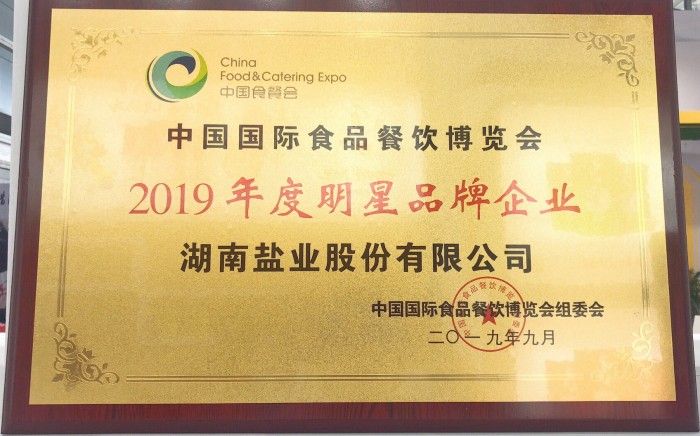 湖南盐业始终秉承“融化自我,造福社会”的企业精神,坚持创新,走产品差异化道路。本次中国食品食品餐饮博览会上,湖南盐业荣获了2019年度明星品牌企业。