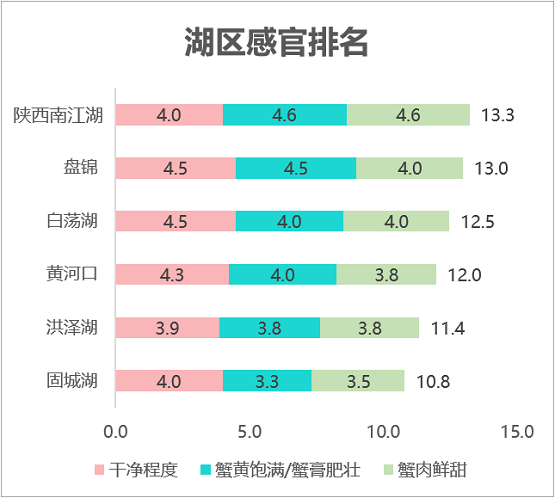 经过现场盲品,消费者从大闸蟹的干净度,蟹黄/蟹膏、蟹肉等多个维度进行了分项打分,综合各项评分排名,最终,陕西南江湖、盘锦、白荡湖分列前三。具体来看,白荡湖产区和盘锦产区以4.5分高分并列干净卫生项评分第一,其中盘锦产区选取的样本产品已经在七鲜超市店内卖成了爆款。陕西南江湖产区则在蟹黄饱满/蟹膏肥壮、蟹肉鲜甜两项上均以4.6分雄踞榜首。