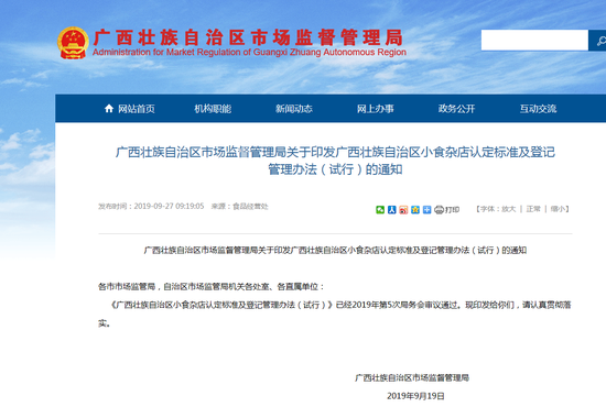 广西壮族自治区市场监督管理局近日印发《广西壮族自治区小食杂店认定标准及登记管理办法(试行)》(以下简称《办法》)通知,明确细化对小食杂店的认定标准。