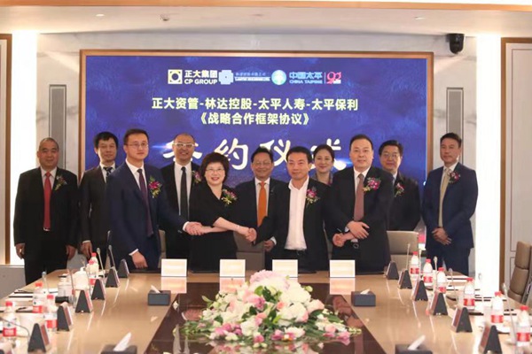 9月27日,正大资产管理(深圳)有限公司、林达控股有限公司与太平人寿保险有限公司、太平保利投资管理有限公司战略合作协议签约仪式在正大集团中国总部正大中心举行。