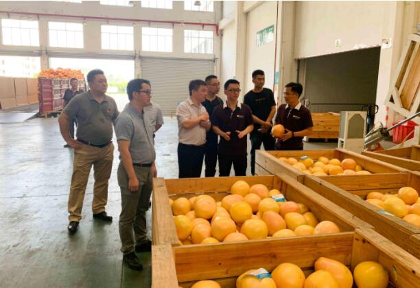当天,苏宁生鲜团队在华润五丰农产品(深圳)有限公司总经理张小波的带领下,深入果园,亲自考察了蜜柚的种植环境和果实生长、成熟情况。随后,苏宁生鲜团队又来到华润五丰农产品有限公司的蜜柚加工厂,参观了蜜柚从采摘、清洗、挑果、分级、包装、储藏到发货的一条龙加工全流程,确保消费者吃到口中的蜜柚的高品质。