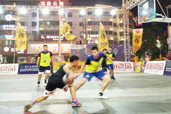 3V3篮球赛,选手十分投入。