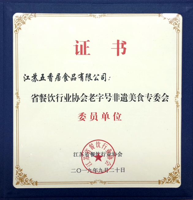 据悉,江苏五香居食品有限公司的“五香居”品牌始于1901年,“五香居”的卤制技艺从晚清时期侍奉过李鸿章的御厨朱氏到如今,已历经6代传承人,距今已有100多年的历史,目前,江苏五香居食品有限公司董事长孙洪留是这项技艺的第6代传承人。2018年,“五香居”的卤制技艺被列入非物质文化遗产名录。
