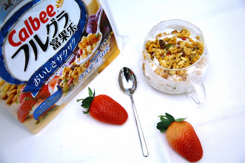 而卡乐比减少糖麦片正是根据山田悟先生所倡导的“和缓限糖饮食“理念所研发,每餐50g的量含有18.2g糖分,并且富含6.9g的食物纤维,作为早餐食用是再合适不过的。
