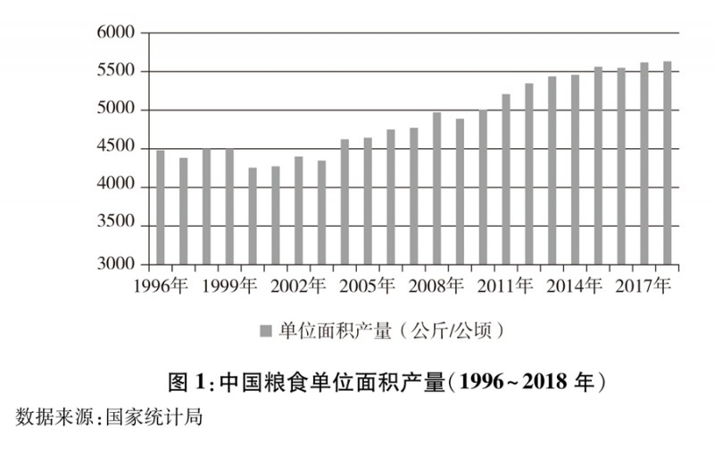 图1:中国粮食单位面积产量(1996~2018年) 新华社发