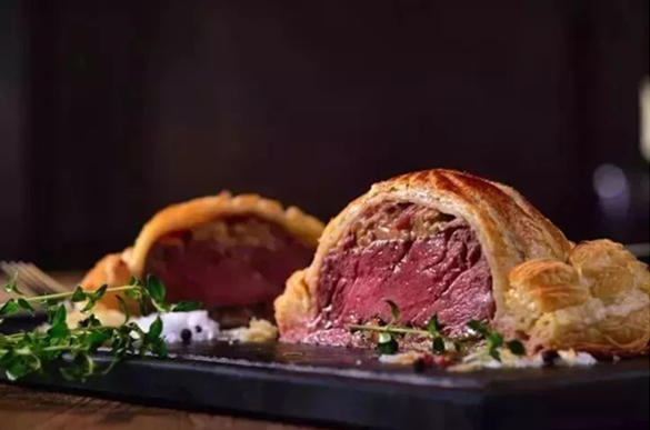 看过《地狱厨房》的小伙伴相信都知道,戈登拉姆齐的惠灵顿牛排绝对是独具特色!不仅外形漂亮,而且口感美妙,最独特的牛肉和面皮之间的那一层蘑菇酱。而2016年的电视剧《好先生》的热播,更是让这道美味且历史悠久的牛排遍地开花。牛排家的惠灵顿牛排做的自然是别有一番风味,这可是经过了多达500次的配方调整才最终敲定的精品。切开金黄香酥的64层纯手工制作酥皮,跃入眼帘的是厚厚一块牛菲力,被风干两年的意大利帕尔玛火腿和波多黎各菌混合香草炒干做成的馅料包裹着,犹如一场顶级食材的狂欢。