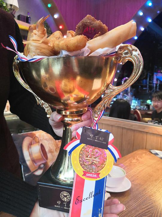 【 冠军杯 】炸薯角、鳕鱼条、炸鸡块、鱿鱼圈、虾酥卷、咖喱角、玉米片。种类丰富。