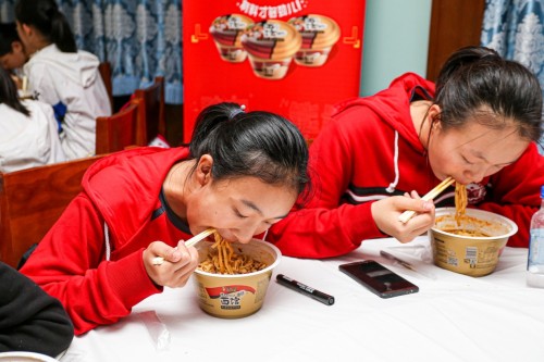 活动结束后,康师傅为孩子们准备了运动营养补给餐,听说孩子们体验的这款速达面馆是康师傅新研发的郎导同款产品,鲜嫩大肉块和多种蔬菜受到郎导、朱婷以及多支国家队的强烈好评。如此的营养美味让大家此前很难想象,也难怪这些刚刚挥洒完汗水的孩子们吃得津津有味。