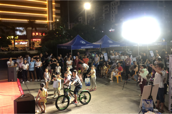 9月17日当晚,在横琴新区的荷塘社区,本次系列活动打响了第一炮。激情澎湃的快闪,吸引了众多居民围观;鲜活生动的小品,阐明了日常食安知识;朗朗上口的三句半,激发了现场观众兴趣。