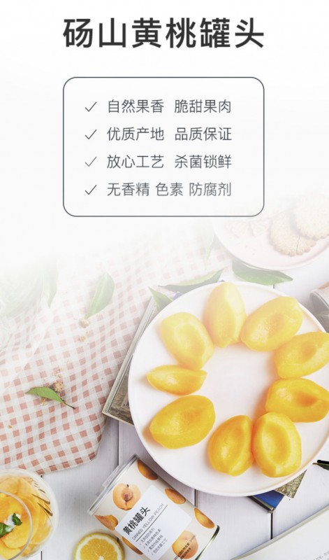 一款好的罐头是通过精良的技术制作而成,而非化学成分的添加。这款砀山黄桃罐头就是经过人工挑选蒸煮等十多道匠心工序来锁鲜,以保留住黄桃原本的自然味道。从产品配料表来看,其成分仅含:黄桃、水、白砂糖、维生素C及柠檬酸,并未添加任何人工甜味剂、防腐剂及香精色素。