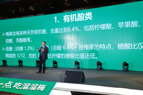 中国中医科学院于智敏教授一直致力于青梅的研究,他在大会现场与到场嘉宾分享到,青梅是一种良好的碱性食物,他富含的柠檬酸和熊果酸可以有效消除疲劳,起到提神解乏的作用,而苹果酸可以有效促进胃液分泌,促进消化,起到健胃消食的作用。其他还有诸如生津止渴、促进代谢、美化肌肤抗衰老和抗肿瘤等作用