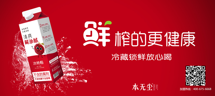 本无尘健康科技公司,专注低温冷链健康果饮研发,近年通过对国内饮品市场及果汁消费现状的调研分析,结合目前国人餐饮消费怕油腻、怕肥胖、怕不健康等心理特征,本无尘特别研发无添加、无防腐剂的低温冷链冰杨梅汁,通过构建专业一条龙冷链配送系统,以最快最健康的方式为国人餐前呈献一杯健康美味的饮品。即开即饮、易于倒取的包装形式,结合1000ml的包装容量,也让这款杨梅汁更适用于餐饮场合,在饮用功能性和使用便利度方面,都能最大限度地满足消费者需求。