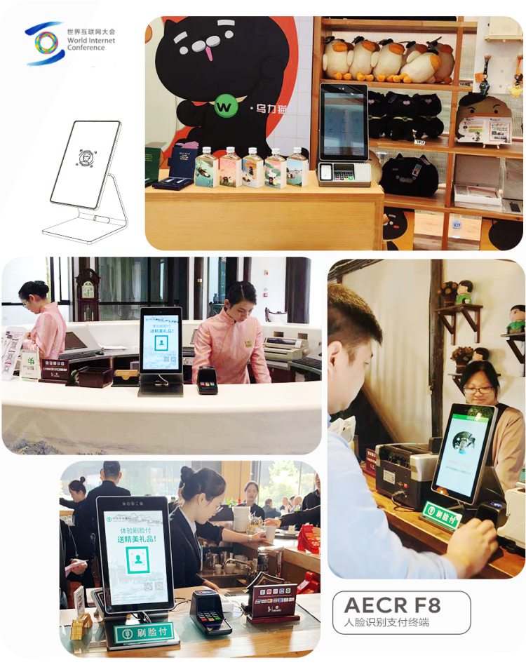 在大会前夕,近百台由联迪商用自主研发、设计和生产的人脸识别支付终端AECR F8已在乌镇景区的众多特许商户中投入应用,让这座古镇的全球访客率先体验到中国领先的刷脸支付技术。