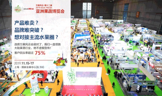 2019万果风云——亚洲果蔬博览会将于11月15-17日在上海国家会展中心8.1H馆举办,是大陆地区遥遥领先的全球新鲜果蔬全产业链专业贸易旗舰展。并且是由中国果品流通协会、中国蔬菜流通协会两大主导协会上海地区唯一指定主办的果蔬展。并且与进博会常年展同时同地举行,完美承接进博会溢出效应!