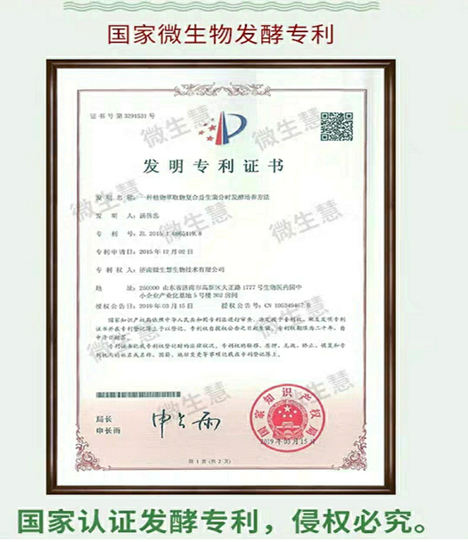 2019年9月6日,由第三方专业科技成果评价机构——中科合创(北京)科技成果评价中心专家,山东省食品发酵工业研究院副院长、研究员苏理,齐鲁工业大学教授刘新利、山东师范大学教授刘建龙、齐鲁工业大学教授王腾飞、济南大学教授谷劲松、山东省农科院研究员岳寿松、山东省发酵设计院研究员董学前,依据科技部《科学技术评价办法》的有关规定,对济南微生慧生物技术有限公司完成的“复合益生菌共生发酵植物萃取物培养技术的研究”项目进行了科技成果评价,经专家全面审核一致同意通过科技成果评价。