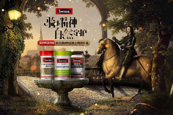 健合集团旗下另一主打品牌Swisse从洞察当今社会男性承担的家庭、社会、工作压力角度,溯源骑士精神,唤起守护者角色的认同,以骑士精神支持努力拼搏地男人们。以英国国家美术馆的《圣罗马诺之战》和《穿猎装的查理一世》两幅经典画作为设计灵感,推出了“骑士能量”系列礼盒与“骑士精神”系列礼盒。