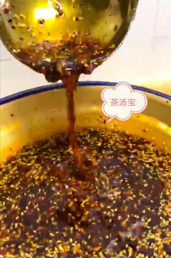 茶汤宝具有油辣椒的色泽而更加好看;具有辣味而温和,辣嘴不辣心;颗粒酥脆,满口生香,醇厚绵长,回味不绝;闻之异香,鼻口清凉;具有神清气爽,开胃增食之法力;无论是炒菜,拌饭,做饼,火锅,麻辣烫,串串香,烧烤,面食,分管,卤菜,拌菜等等,吃后不油腻,胃肠翻滚,食欲动,好似口水流出;真有肚子撑破了嘴里还想吃。