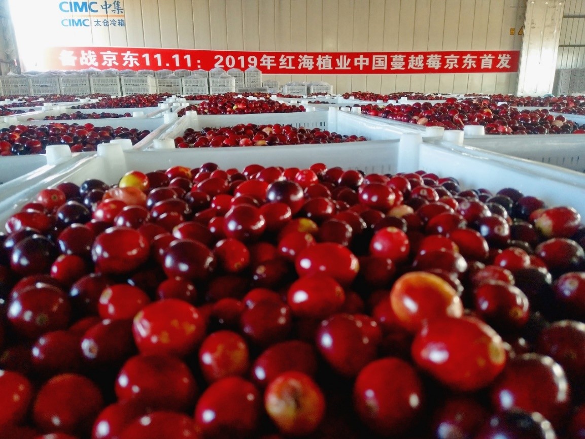 仓库内,第一批蔓越莓鲜果整装待发