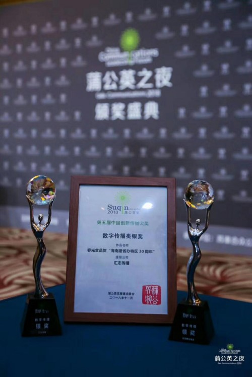 近日,在全球公关人之夜暨2019金旗奖颁奖盛典上,由海南春光食品集团发起、汇志海南公司策划并执行的“春光潮服×海南非遗”国潮创意整合传播项目喜获中国品牌公关传播业界最全面最具权威力的金旗奖品牌传播金奖。这是继去年“春光贺海南建省30周年”事件营销项目获得蒲公英数字传播大奖之后又一获奖项目。