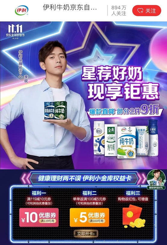 据悉,京东将把今年的京东11.11打造成好物、低价、好服务的新主场,打造成2000多家超亿元品牌下半年最大增量场,并为20多万商家提供巨大增量,打造成品牌、商家最友好的平台。伊利作为中国最大规模的乳制品企业,此次也将倾情加盟京东超市11.11,为每一位消费者奉上多款超低价产品,让其拥有一场真正尽兴的好物之旅。