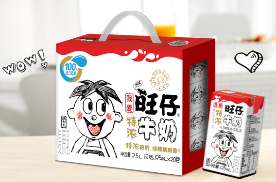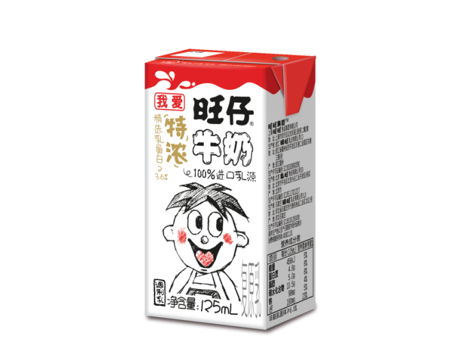 旺仔特浓牛奶的包装版面为素描版的旺仔,一笔一划都仿佛是小孩子用蜡笔画出来的。然而,别看旺仔特浓牛奶包装上的素描旺仔有点“可爱”,事实上旺仔特浓牛奶的制作工艺可一点都不小儿科!