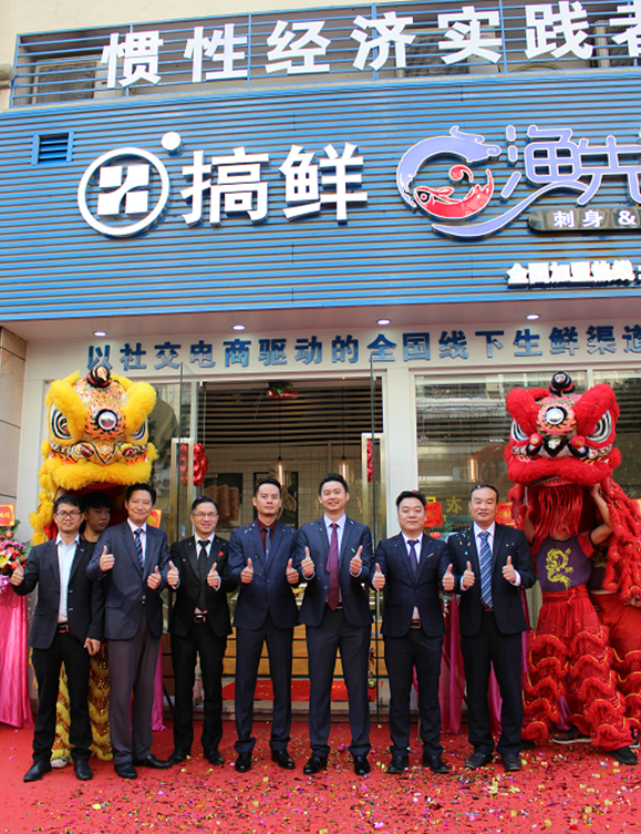 11月1日,中山知名刺身品牌渔先生正式加盟搞鲜,“搞鲜·渔先生”在中山隆重开业,渔先生创始人潘云翅、潘云嘉、汇富集团行政总裁陈高璋、搞鲜科技执行董事郑品、菊城担保总经理许树辉、中国海外资本董事总经理张俊文等人出席了开业剪彩仪式。