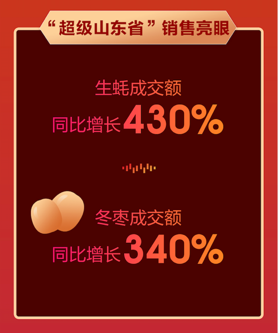 值得注意的是,“超级省”计划山东站的农产品表现尤为亮眼。继10月25日,京东在山东省落地首个农产品上行专项解决方案京东生鲜“超级省”计划后,京东生鲜联合山东省商务厅重点培育的20个产业带中,近期正处上市期的山东苹果、乳山生蚝、鲁参、沾化冬枣等生鲜农产品便持续升温,销量急剧增加,热销全国。