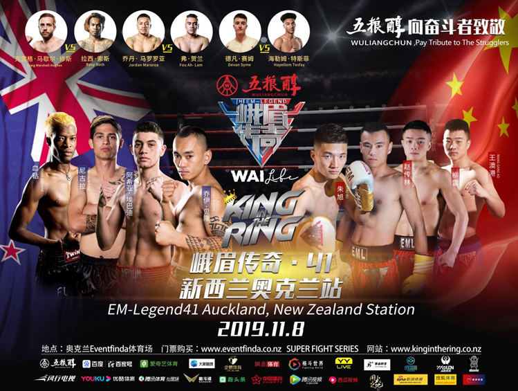 11月8日,五粮醇《峨眉传奇》将远赴新西兰最大的城市奥克兰,与当地搏击强者一较高下。朱旭、赵传林、柳雷等几位《峨眉传奇》明星选手将组成中方阵容,代表中国武者再战新西兰。