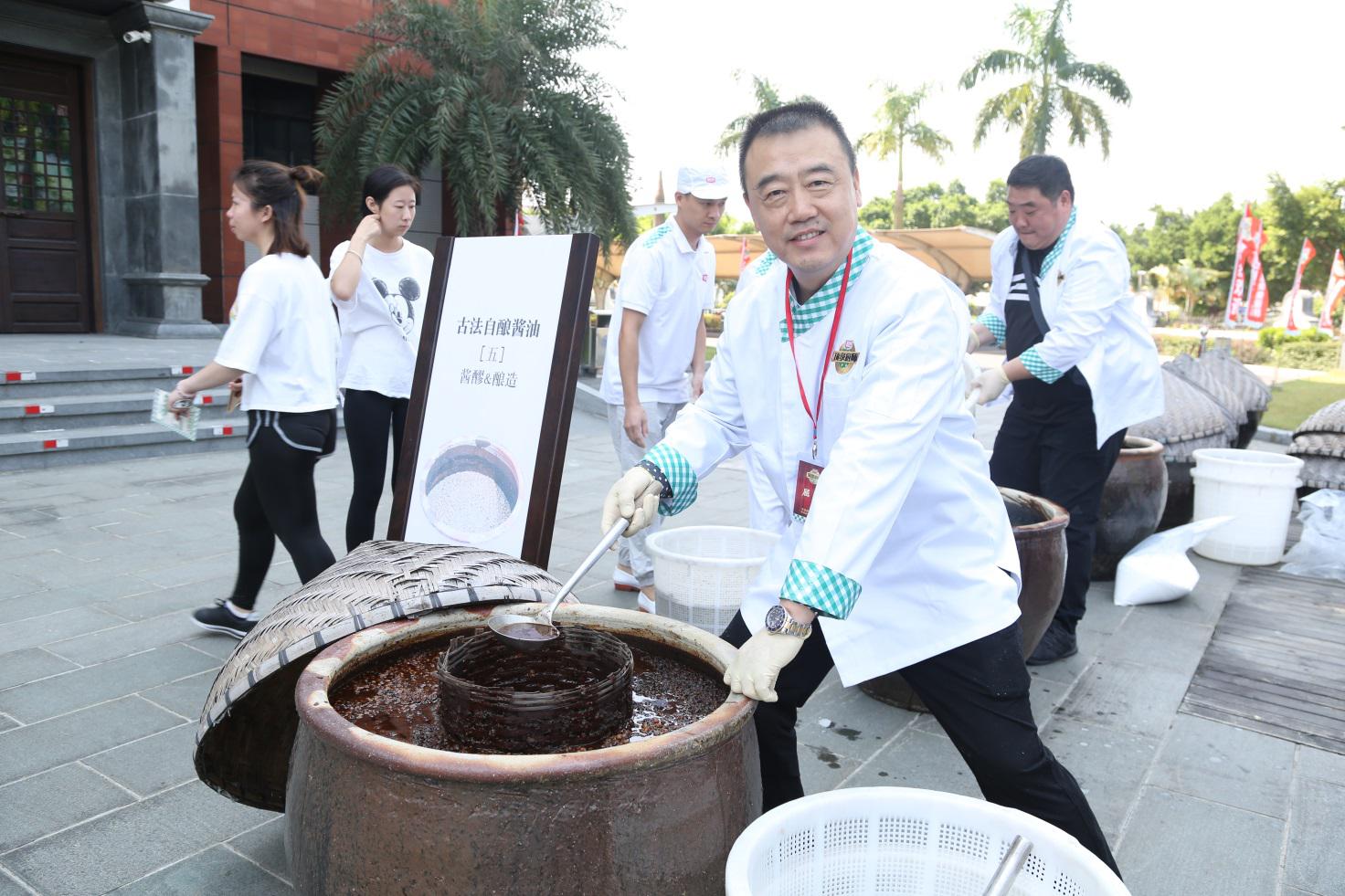 为了让到访嘉宾对传统南派酱油晒制工艺有更加深刻的理解,一场别开生面的自酿酱油体验活动在厨邦酱油文化博物馆前举行。从选豆、泡豆、煮豆、尝豆到最后的酱醪、封缸,嘉宾们亲自动手体验了一次传统南派酱油的酿造。这一特别的体验让嘉宾们兴趣大发,与在场的技术人员进行了深入交流,对传统南派酱油的酿造也有了难忘体验,对厨邦酱油有了深刻的味道记忆。后续,这一缸缸酱油将继续在“厨邦顶级厨师特供晒场”上进行发酵、晒制。180天后,它们将变身为一瓶瓶定制自酿酱油,送到贵宾们手上,成为终生难忘的纪念品。