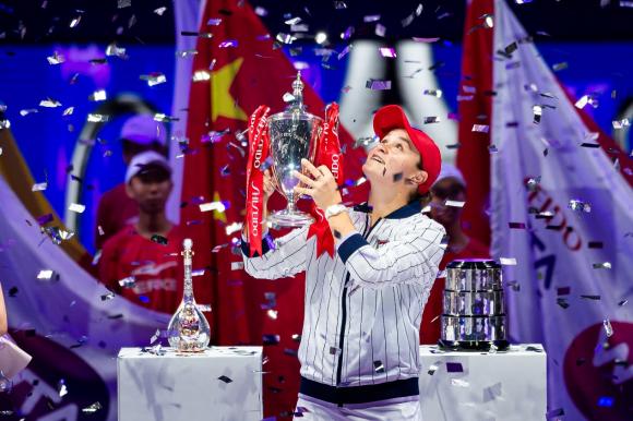 在今晚的比赛中,年轻的澳大利亚姑娘巴蒂以2比0 的大比分横扫卫冕冠军斯维托丽娜,这场比赛赢得并不轻松,两盘比分为6-4/6-3,这也终结了对手的总决赛十连胜,在职业生涯于与对手六次交手,首次取胜,这也是巴蒂生涯第一次获得年终总决赛冠军头衔,这是她今年的第四座冠军,也是生涯第七次捧杯!