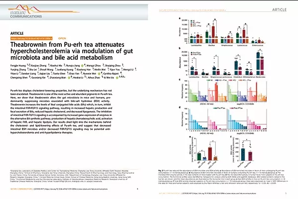 贾伟教授及团队完成的关于普洱茶降脂机制的研究
