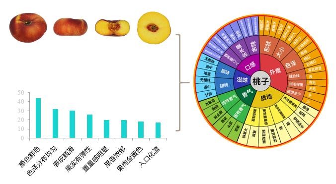 报告援引熊猫指南对桃子的专利品质评价方法。据悉,该方法由桃子的感官品质模块、实验测评模块、消费者喜好数据三个模块组成。其中,熊猫指南通过具有自主知识产权的“风味轮”感官评价工具,从外观、风味、口感、滋味、质地等维度中找出与桃子相关的评价指标,并结合仪器检测数据形成桃子标准化评价方法。