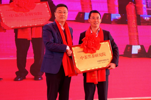 中国茶叶有限公司总经理助理徐国荣为中茶黑茶研究院授牌