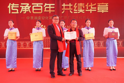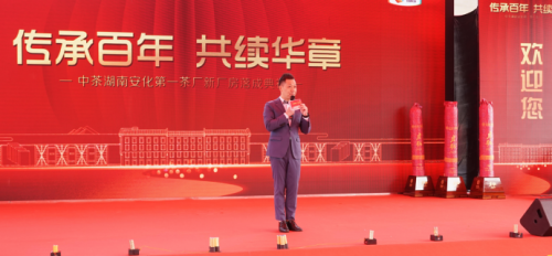 中茶湖南安化第一茶厂有限公司董事长张晓艳表示:“在传承百年薪火、承托几代中茶人梦想的新厂房落成这一历史性时刻,“传承百年·共续华章”这八个字,既表达了我们对初心的坚守,又体现着我们对使命的担当,也记载着安化第一茶厂百年来风雨无阻、奋勇向前的光辉历程。安化第一茶厂将坚持 “使命六做”,即“做标准、做链条、做技术、做品牌、做渠道、做产品”继续在“品牌消费品公司”发展道路上砥砺前行。”