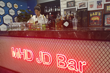 京东洋酒买手在工位旁边的JD BAR品鉴洋酒