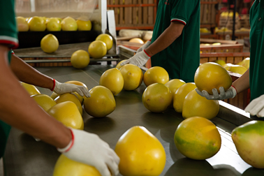京东生鲜买手在工厂抽检柚子并监督产品加工包装
