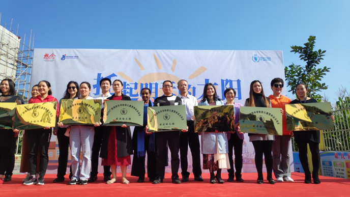 在启动仪式上,联合国世界粮食计划署中国办公室副主任玛哈·艾哈迈德、广西壮族自治区农业农村厅副巡视员陈国平、想念食品市场总监宋浩等相关领导为项目试点幼儿园颁发“WFP学龄前儿童营养改善试点幼儿园”牌匾。