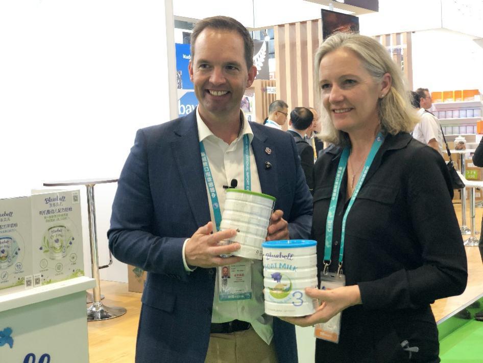 本次进博会,New Zealand Made认证计划执行董事Ryan Jennings, 更是专程来到Bluebell展区,和Aotearoa Nutrients Limited 总经理邵玥女士一起, 为Bluebell宝乐贝儿的明星产品打call。