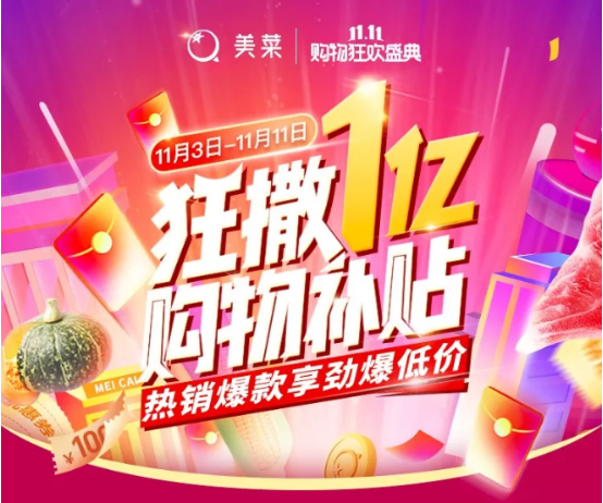 “1亿购物补贴”已在路上!就现在,快喊上小伙伴,让我们一起开启这届“美菜11.11购物狂欢盛典”吧~