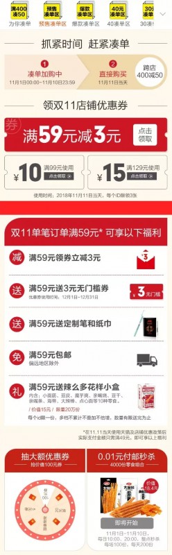活动方式:满减、津贴、半价折扣、付款时间及排名优惠、抽奖