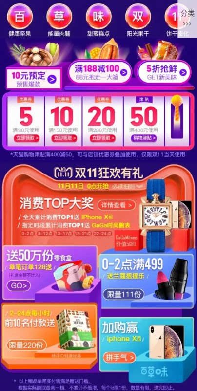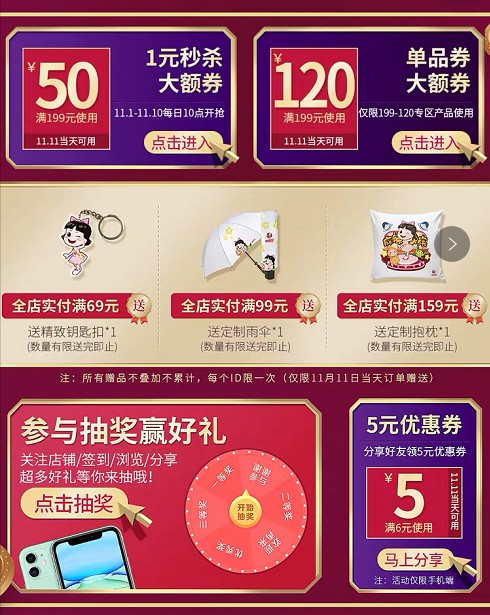 良品铺子的活动规则不要太多,一不留神就头昏眼花。而且良品铺子平常经常满199-100,感觉双十一吸引力有限阿……