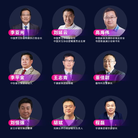 食堂福利和建设已经成为企业文化特色的重要组成部分,因此本次峰会将会有代表性的企业食堂负责人参与讨论,包括以极致服务满足企业职工需求的宇通集团餐饮部部长程磊,以及以健康时尚著称、打造网红企业食堂的完美世界后勤餐饮负责人胡斌。另外,作为团餐信息化服务商代表,雄伟科技董事长董佳尉、满客宝CEO于义海等也将分别在各自深耕的领域,畅谈中国团餐创新变革方向。