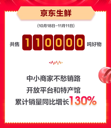 近日,京东11.11全球好物节圆满落下帷幕,京东生鲜11.11战报出炉,成绩斐然。活动期间,通过“活色生鲜节”、“超级省”、“超级百亿补贴千亿优惠”等专题大促,京东生鲜累计卖出11万吨生鲜,销量再创新高!