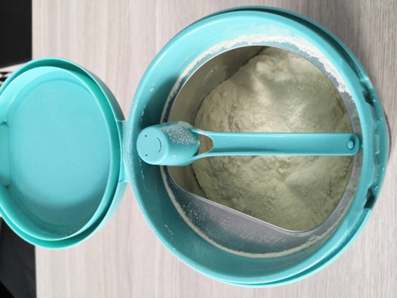 爱可丁奶粉的色泽呈现乳黄色,粉质均匀,无结块结团,用手指轻捻搓动,粉质绵软细腻,醇香的奶香味儿扑鼻而来,无刺激气味。准备120ml的55度白开水,按照建议剂量,倒入四勺奶粉,可以看到奶粉溶解很均匀,轻轻摇晃奶瓶,使其充分溶解,几乎无挂壁无沉淀,口感细腻,奶香四溢。
