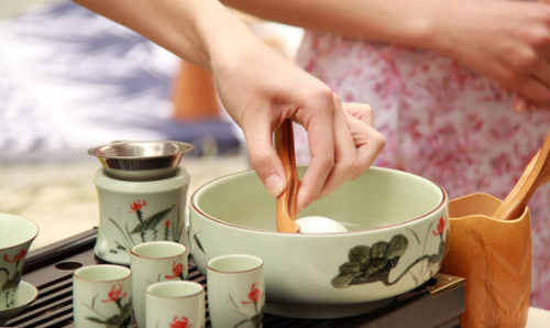 3,倒入上品罗浮山山泉水烧好的开水后,马上把茶壶中的水倒掉,是为了洗一下茶叶。