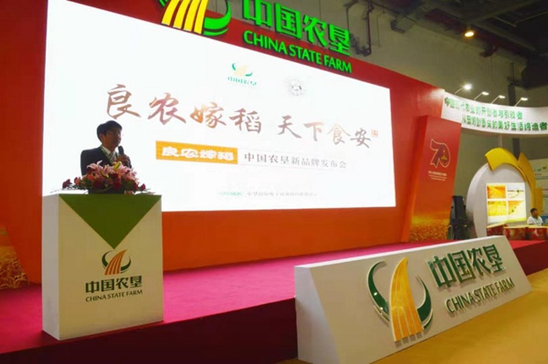 (中国农垦经济发展中心副主任陈忠毅在良农嫁稻品牌发布会上致辞)